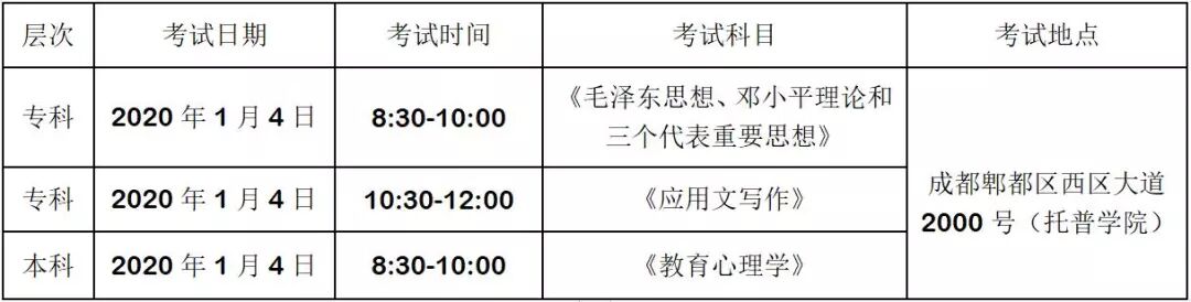 本次考试时间定于2020年1月4日(星期六)上午半天。